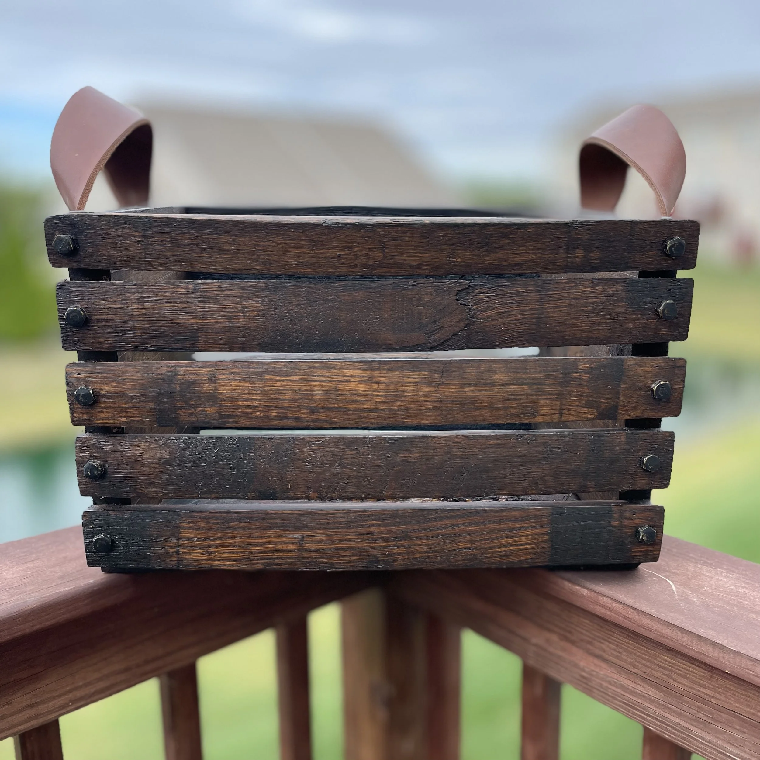 Our kindling basket is made from authentic bourbon barrel staves, sourced from a Kentucky distillery where they aged fine bourbon for over four years.